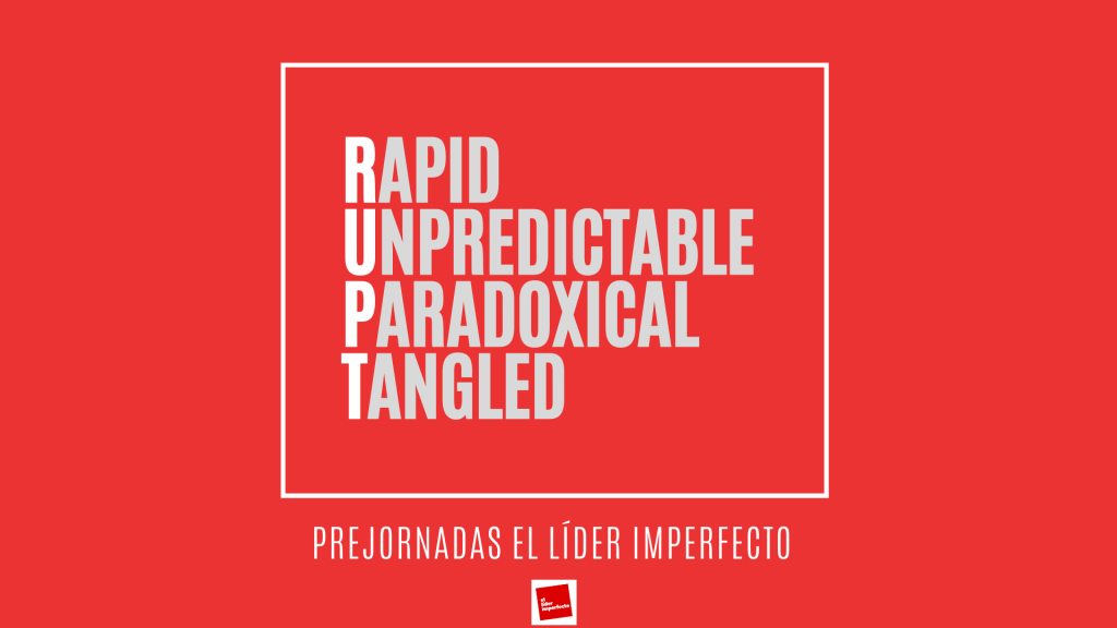 Este mundo, al que algunos llaman RUPT Rápido (Rapid). Impredecible (Unpredictable). Paradójico (Paradoxical). Intrincado (Tangled) necesita líderes, y seguidores, que entienden que, para inspirar confianza, compasión, estabilidad y esperanza, y estimular el rendimiento colectivo, es imprescindible empezar por uno mismo: