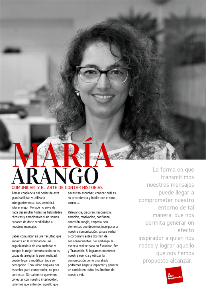 «La forma en que transmitimos nuestros mensajes puede llegar a comprometer nuestro entorno de tal manera, que nos permita generar un efecto inspirador a quien nos rodea y lograr aquello que nos hemos propuesto alcanzar.» María Arango